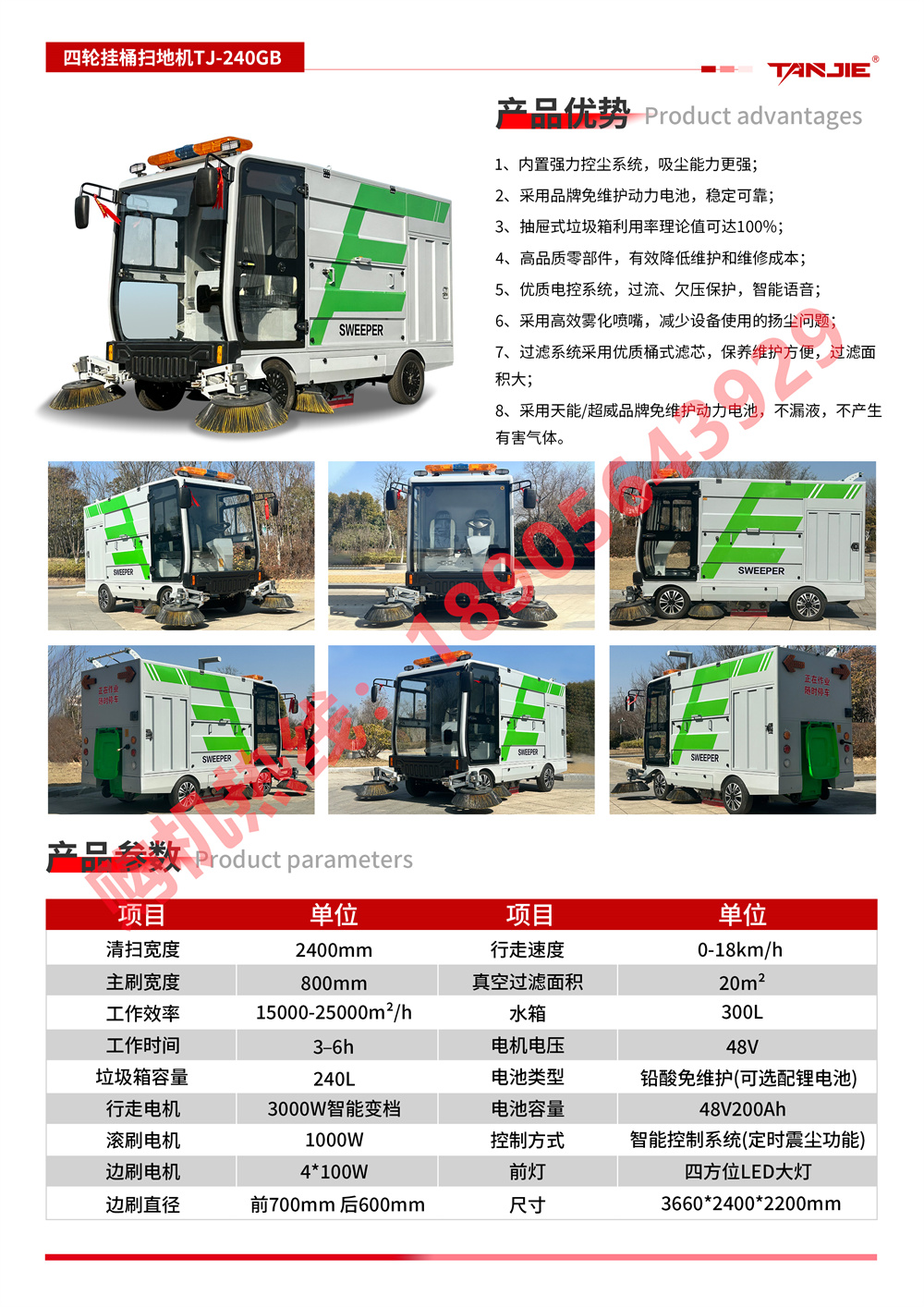 内蒙古坦洁四轮挂桶扫地车TJ-240GT