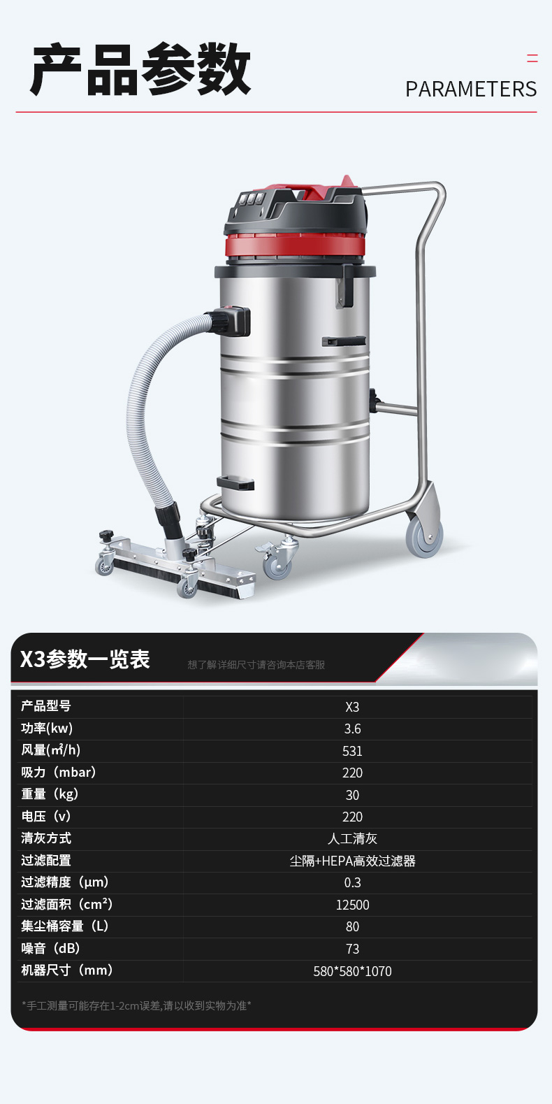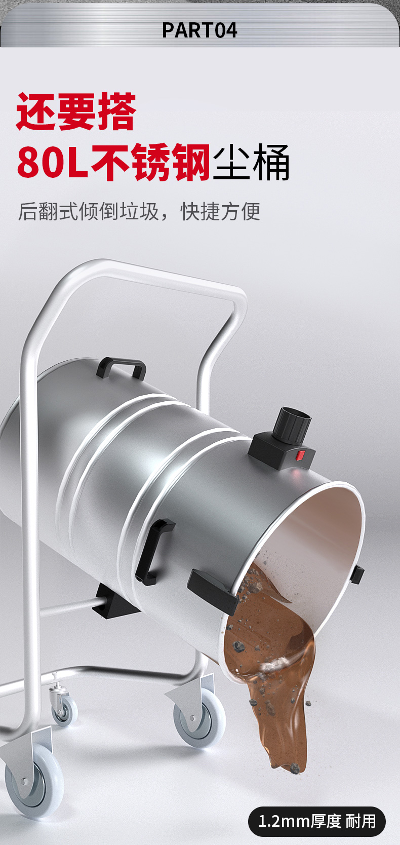 内蒙古坦洁220V单桶不锈钢工业吸尘器X3系列