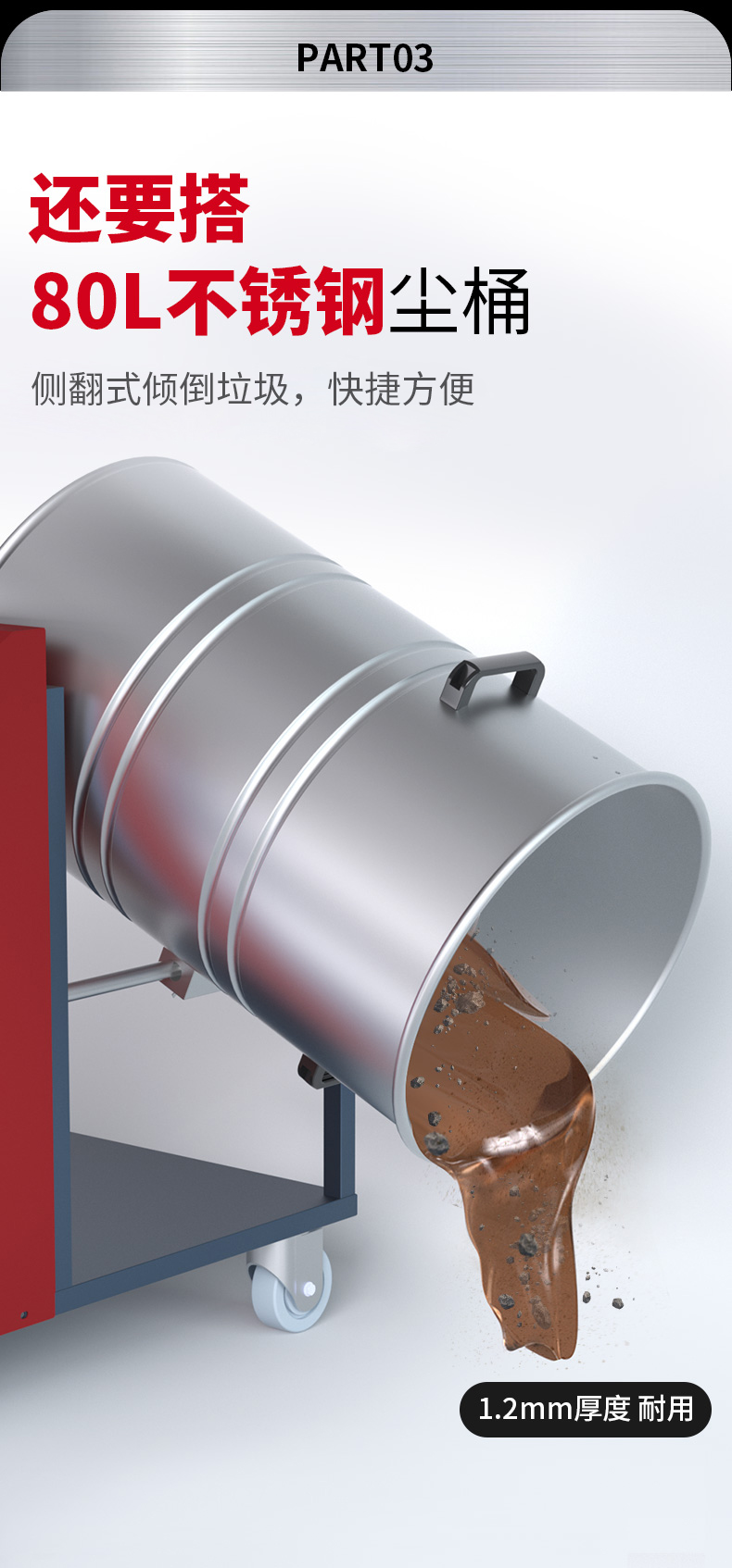 内蒙古坦洁220V单桶不锈钢工业吸尘器X3系列