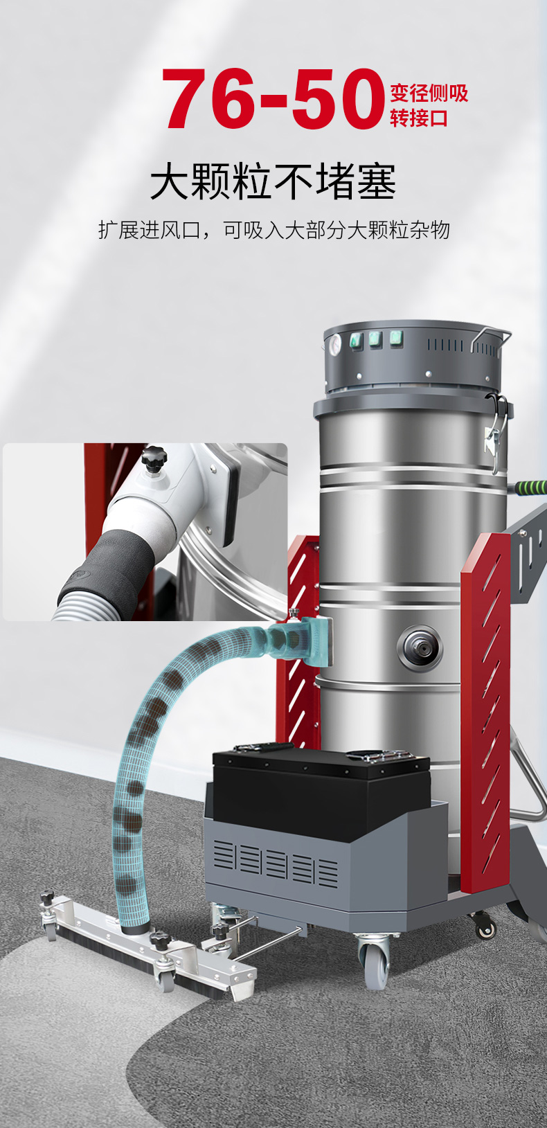 内蒙古坦洁380V单桶不锈钢工业吸尘器X5系列