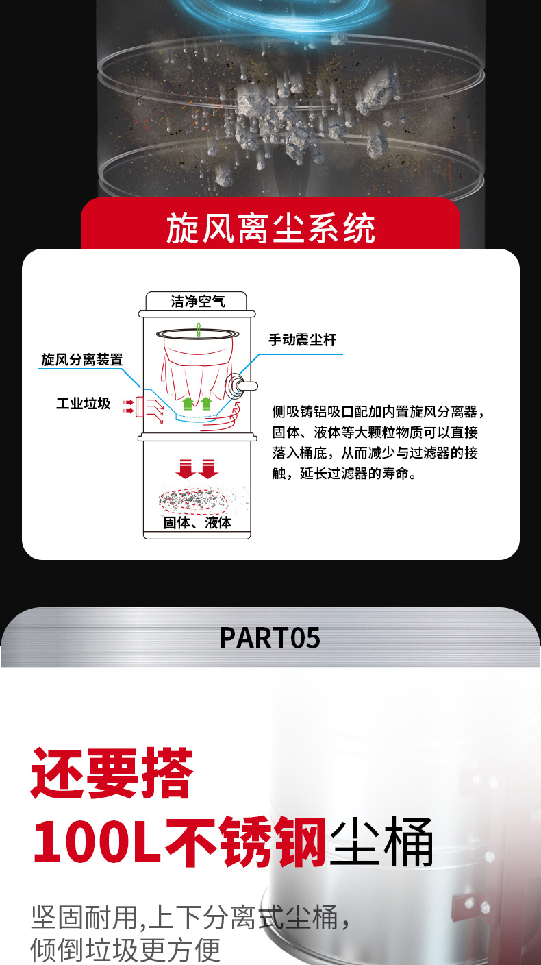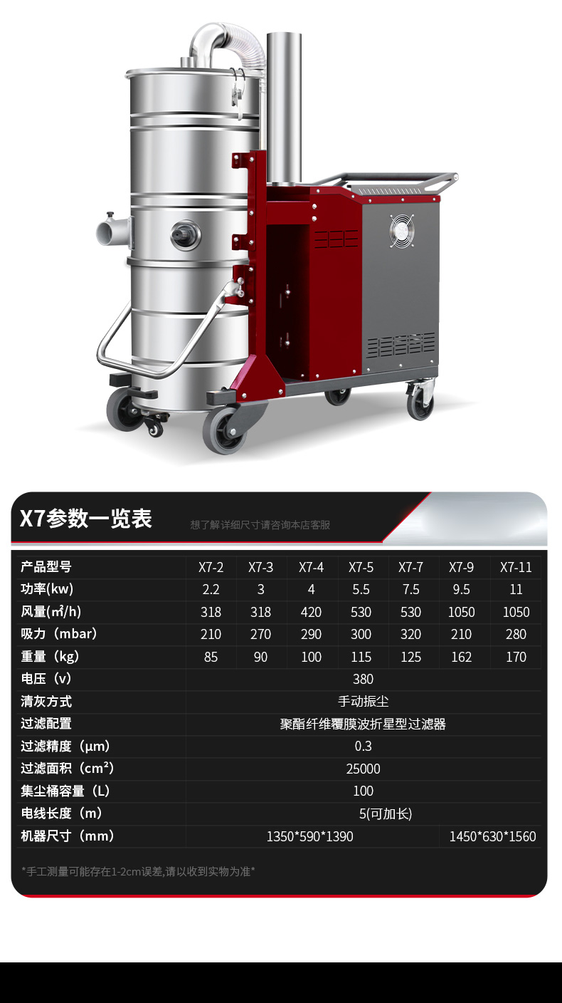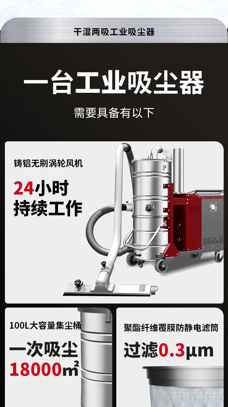 内蒙古坦洁380V双桶不锈钢工业吸尘器X7系列